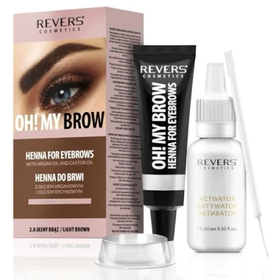 REVERS COSMETICS Eyebrow Dye Kit Light Brown Ammonia Free, Brow Tint with Argan Oil and Castor Oil, Salon Quality, Natural Result, Lasts Up to 4 Weeks, 15 Applications
