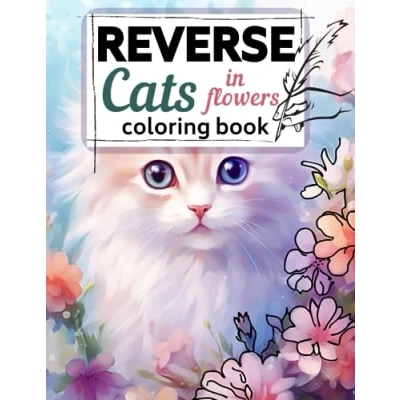 Reverse Cats in Flowers Coloring Book for Adults and Teens: Full color Watercolor Illustrations You Draw The Lines (Reverse Art)