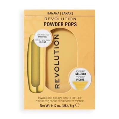 Revolution Powder Pops, Compact, Blurs Skin & Controls Shine, Acai Berry Hyaluronic Acid, Includes Case Pop Socket, Vegan Cruelty Free, Yellow, 5g
