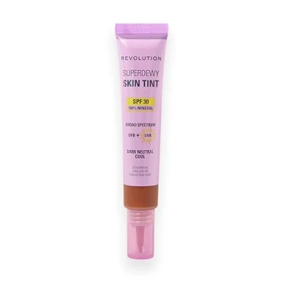 Revolution Superdewy SPF30 Skin Tint, Suitable for Sensitive & Acne Prone Skin, Lightweight Buildable Formula, Vegan Cruelty Free, Dark Neutral Cool, 28ml