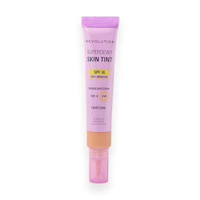 Revolution Superdewy SPF30 Skin Tint, Suitable for Sensitive & Acne Prone Skin, Lightweight Buildable Formula, Vegan Cruelty Free, Light Cool, 28ml