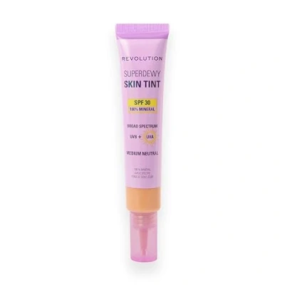 Revolution Superdewy SPF30 Skin Tint, Suitable for Sensitive & Acne Prone Skin, Lightweight Buildable Formula, Vegan Cruelty Free, Medium Neutral, 28ml