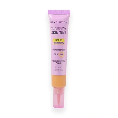 Revolution Superdewy SPF30 Skin Tint, Suitable for Sensitive & Acne Prone Skin, Lightweight Buildable Formula, Vegan Cruelty Free, Medium Neutral Warm, 28ml
