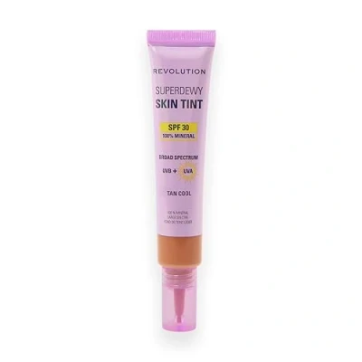 Revolution Superdewy SPF30 Skin Tint, Suitable for Sensitive & Acne Prone Skin, Lightweight Buildable Formula, Vegan Cruelty Free, Tan Cool, 28ml