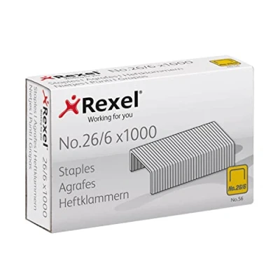 High quality staples in number 56 size, universal fit for most standard desktop staplers and stapling pliers, bulk pack of 20,000 staples 6mm leg length for stapling up to 20 sheets of paper (80gsm) at once, made from premium quality steel for a strong hold Secure staples suitable for regular and every day stapling tasks, for accurate and trouble-free use The ideal office supplies, perfect for using at home, work, school or university; for documents, filing, projects, crafting and more Contents: 20 x boxes of 1,000 Rexel No.56 (26/6) staples, dimensions: 5 x 1.8 x 6.5 mm (2115727)