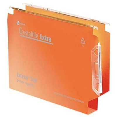 Rexel 330 Lateral Hanging Files with Tabs and Inserts, 30 mm base, Polypropylene, Orange, Crystalfile Extra, Pack of 25, 3000125