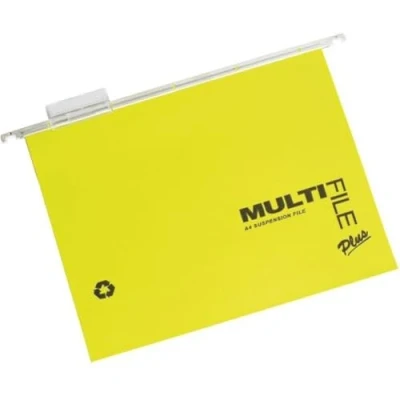 Brightly coloured A4 hanging files in 4 assorted colours 3 x green, 3 x blue 2 x red and 2 x yellow ideal for creating a colour coded filing system in filing cabinets, desk drawer chassis and desk top organisers with rails 330 mm apart Standard capacity, 15 mm V-base holds up to 150 A4 sheets (80 gsm), file dimensions 330 x 240mm, runner length 350 mm Supplied with tabs and unique printable inserts for easy referencing Made from 100 Percent recycled fade-resistant manila with Nylon coated runners to helps the files move smoothly over the rails Contents: 1 x Pack of 10 Rexel A4 Multifile Plus 15 mm Manilla Suspension Files, Assorted colours, 92808, Dimensions (WxHxD): 350 x 240 x 15 mm, for hanging on rails 330 mm apart
