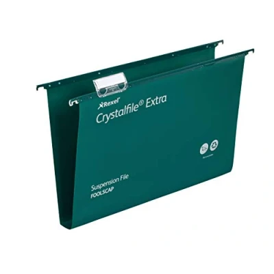 The Rexel Crystalfile Extra Foolscap Suspension File is renowned as the UK's best-selling suspension file since 1945, making it a preferred choice for both home and office organisation. Constructed from tough polypropylene, these files are designed for longevity, typically lasting up to five times longer than traditional manila folders. With a wipe-clean satin finish, they maintain a professional appearance while offering excellent durability.