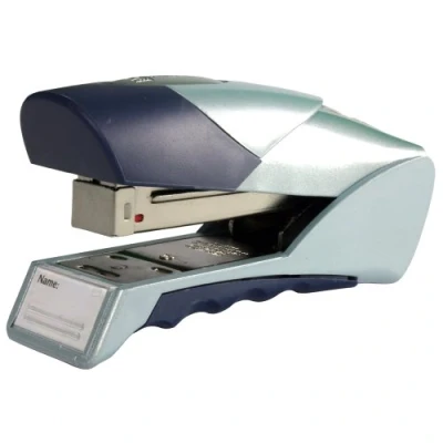 Premium stapler for up to 25 sheets (80 gsm paper), Ideal for desktop stapling in the office, at home or at school, Space saving design to stand vertically or horizontally on your desk Ergonomic grip to ensure accurate and comfortable stapling, Name plate for easily-seen personalisation of your stapler Staples 2-20 sheets with No. 56 (26/6) staples and up to 25 sheets with No. 16 (24/6) staples, Top loading staple refill mechanism with a patented StapleScope staple refill indicator window Features a 64mm paper insertion depth for flexible stapling, Tacking and pinning functions for display boards or temporary stapling, 5 year guarantee when using Rexel staples Contents: 1 x Rexel Gazelle Half Strip Stapler, Silver/Blue, Dimensions (WxHxD): 13.5 x 6.3 x 3.3 cm, Weight: 191 g, 2100011