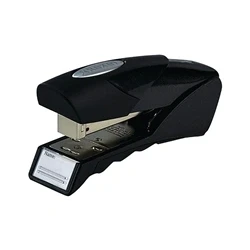 Patented mechanism shows clearly when staples are running low. Strong metal body for durability. Soft feel hand grips for comfortable stapling. Highly visible nameplate area to personalise the stapler, helps prevent stapler loss.