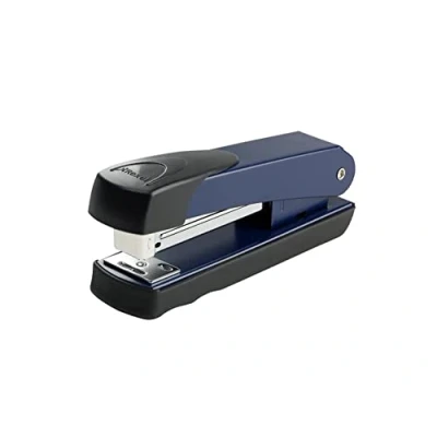 Versatile desktop stapler for stapling up to 20 sheets (80 gsm paper), Ideal for desktop stapling in the office, at home or at school, Solid construction with a traditional design Ergonomic grip to ensure accurate and comfortable stapling, Compact size to fit in drawers and to save space on desks Staples 15 sheets with No. 56 (26/6) staples and up to 20 sheets with No. 16 (24/6) staples, Top loading staple refill mechanism makes it quick and easy to refill staples Features a 65mm paper insertion depth for flexible stapling, Tacking and pinning functions for display boards or temporary stapling, 5 year guarantee when using Rexel staples Contents: 1 x Rexel Meteor Half Strip Stapler, Blue, Dimensions (WxHxD): 13.4 x 9.5 x 4.5 cm, Weight: 210 g, 2100020