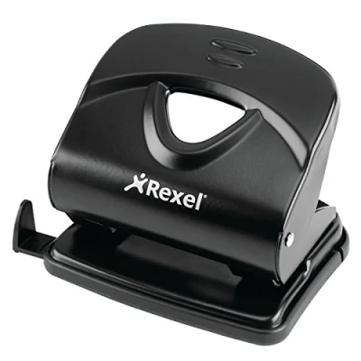 Robust metal 2 hole punch for punching up to 30 sheets (80gsm paper), Ideal for punching papers and documents in the office, at home or at school Adjustable, click stop paper guide bar for accurate punching, Ergonomic design to ensure comfortable use Lightweight and compact for storage and carrying in a work bag, Easy to empty confetti tray to prevent spills Made from metal with a plastic base that won’t scratch or damage furniture, 5 year guarantee Contents: 1 x Rexel Value 230 2 Hole Punch, Black, Dimensions: (WxHxD): 10 x 5.5 x 11 cm, Weight: 340 g, 2100767