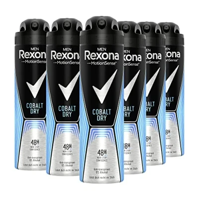 Rexona Men Cobalt Dry antiperspirant deodorant spray 150 ml. A masculine, fresh fragrance. With tried-and-tested MotionSense technology. The more you move, the more it protects. 48-hour protection against body odour and underarm wetness; also available as a 75-ml compressed deodorant spray. Lasts as long as the 150 ml variant, but with smaller packaging; also available as a 75-ml compressed deodorant spray. Lasts just as long as the 150 ml variant, but with smaller packaging.