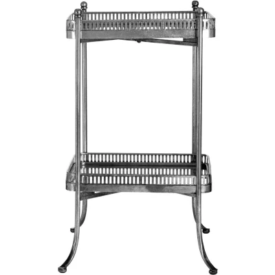 JoybuyThe Interiors by Premier Bar Cart Reza Antique Silver/Mirrored is a compact two-tier side table featuring removable mirrored trays, a slim antique silver iron frame, and decorative lattice detailing, offering both vintage elegance and practical, space-saving storage for any modern or classic living space.