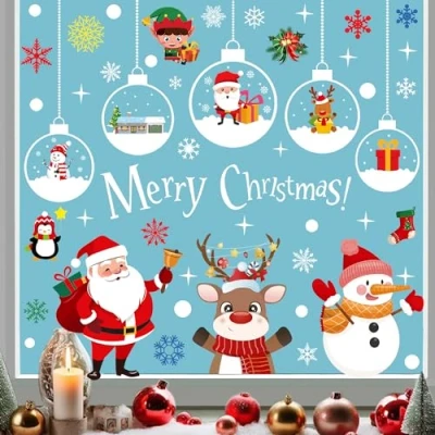 RFWIN Christmas Window Stickers, 98pcs Clings Snowflake Santa Claus Stickers for Decoration, Double Sided Xmas Decals Kids Party Holiday Supplies