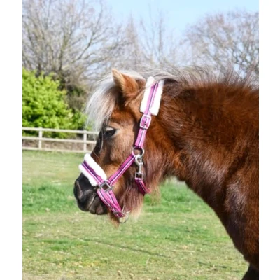 Rhinegold Bright Striped Fur Trim Headcollar Mini Shet Rasp