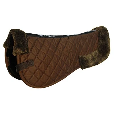 Rhinegold Cotton Horse Riding Saddle Pad Luxury Equestrian with Faux Fur, Trimmed Edges & Girth Replacement Straps. Equipment Numnahs for Horses Ponies