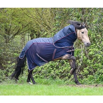 MULTI-ADJUSTABLE CHEST FITTINGS - These chest fittings allow for maximum adjustment and fit whether broad or norrow shouldered. The buckle strap is fully lined with soft fleece for comfort and to help prevent any rubbing. WATERPROOF TOPLINE - Designed for damp summer evenings and made from a 600 denier waterproof topline. The lower section of this rug is made from a robust but soft breathable mesh fabric. NYLON LINING - The topline and neck cover are lined with breathable nylon for a smooth finish that will not pull or irritate the hair or skin. DETACHABLE NECK COVER INCLUDED - The neck cover is effortlessly detachable with easy touch tape lopp fastening for sttaching to the D-rings around the neckline and withers of the rug. ADDITIONAL FEATURES - The rug also features cross over surcingles, a soft fleece wither pad to alleviate any pressure, tailguard for additional coverage and fly protection and an elasticated leg straps for secure placement.