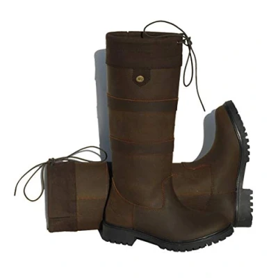 DURABLE WAXY LEATHER DESIGN – Made from high quality waxy leather, these children's country boots are perfect for outdoor adventures, offering durability and a classic country inspired look. SOFT FAUX SUEDE CUFF WITH DRAWSTRING – Featuring a stylish faux suede cuff and an adjustable front drawstring, these boots provide a snug fit while adding a touch of elegance to any outfit. SUBTLE CALF GUSSET FOR A COMFORTABLE FIT – Designed with a flexible calf gusset, these boots allow for a personalised fit, ensuring all-day comfort for growing feet. LIGHTWEIGHT NON-SLIP RUBBER SOLE – Equipped with a sturdy yet lightweight rubber sole, these boots provide excellent grip and stability, making them ideal for walking, playing, and exploring. CUSHIONED INNER SOLES & PREMIUM FINISH – Designed with comfort-fit inner soles and an energy-return sole unit for enhanced support. Finished with embossed branding at the heel and a gold-coloured pin for a premium look.