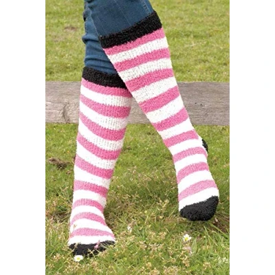 Rhinegold Womens Thick Fluffy Knee High Equestrian Long Socks Pink & White Winter Leg Warmer Horse Riding for Women Ladies Soft Length Bed Socks,
