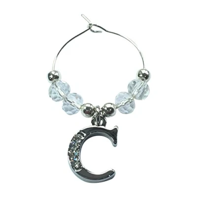 Handmade Personalised Letter C Wine Glass Charm with Rhinestones by Libby's Market Place Letter C charm with beautiful rhinestones and clear crystal beads. Great little personalised gift idea for your loved ones. This wine glass charm is also available with other letters. Please see our other products or contact us to change it to another letter. This charm is also available in a clip on charm option. Letter C charm size 2cm, actual product size 4.5cm.This little great gift idea comes on a display gift card. Gift Card size Height 10cm width 7.5cm. Ring dimension is 2.5cm diameter.
