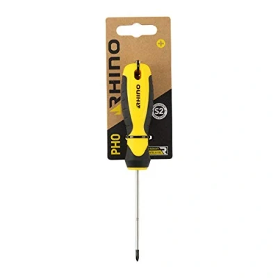 RHINO 15042 Phillips Screwdriver PH0 x 75 mm S2 Steel Blade Ergonomic Handle Magnetic Bit Professional Use Various Sizes Available, NC,