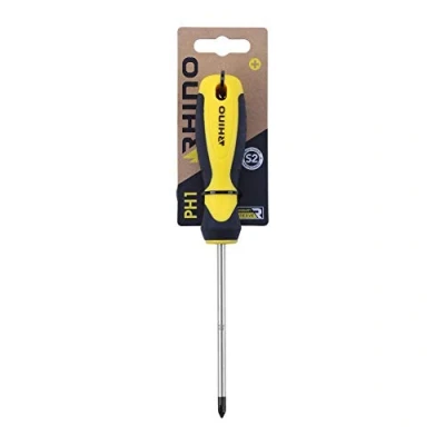 Rhino 15052 Tournevis cruciforme 100mm Phillips Screwdriver PH1 x 100 mm S2 Steel Blade Ergonomic Handle Magnetic Bit Professional Use Various Sizes Available, NC