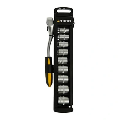Rhino 72 Tooth Ratchet spanners 3/8 inch Wrench Set + 9 sockets Made of Steel (Chrome Vanadium) high Quality Socket Diameter 11 to 19 mm Square