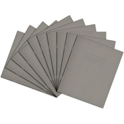Rhino 8 x 6.5 Exercise Books, 48 Page / 8mm Lined with Margin Paper Notebook, 100 Pack, Writing Book, Office & School Stationery Supplies, Grey
