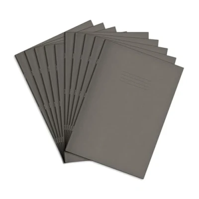 Rhino A4 Exercise Book 80 Page, Grey, 8mm Ruled & Margin Pages (Pack 50)