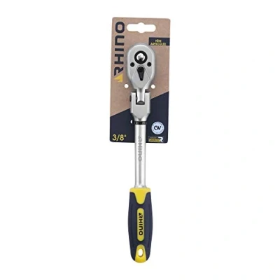 Rhino Ratchet Wrenches Reversible Articulated Ratchet, Socket Wrench Made of Steel (Chrome Vanadium) 3/8 inch Square Drive High Quality 9392 5 Year Warranty