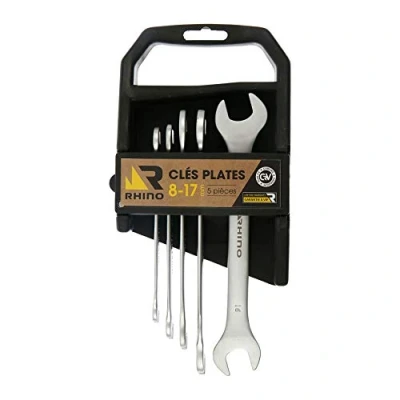 Set of 5 spanners, spanners, diameter 8 to 17 mm, made of steel (chrome vanadium) with satin finish, the essential tool for all types of work (mechanics, assembly, DIY) Set of 5 metric spanners, also known as a clamping wrench or a spanner, allows you to tighten or loosen all types of nuts, heads angled at 15° Diameter: 8 to 17 mm (8x9/10x11/12x13/14x15/16x17 mm) Reference: 003102, Lifetime Warranty RHINO is committed to selecting high quality materials for its range of hand tools: S2 Steel, Chrome Vanadium, High Quality Steel. They ensure strong impact resistance, high hardness and long service life. Special attention is given to the workmanship and design, which makes it attractive and attractive. Guarantee: As customer satisfaction is one of its priorities, Rhino has put an exchange guarantee on almost all of its range, more than half without time limits. It is the guarantee of reliable and quality products, for use with confidence., Weight: 0.8598028218 pounds, Manufacturer: COGEX
