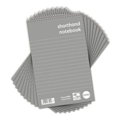 Rhino Shorthand Notebook, 160 Page / 8mm Lined Notepad, 10 Pack, Reporters Spiral Wirebound Writing Pad