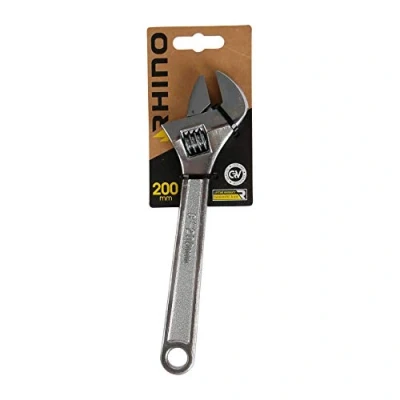 RHINO Wrench with Wide Opening Adjustable Long Length 200 mm High Quality Made of Steel (Chrome Vanadium) Various Sizes Available