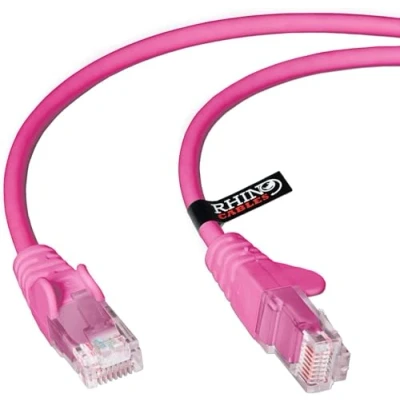 rhinocables CAT 5e High Speed Ethernet Cable Reliable LAN Network RJ45 for Fast Internet & Data Transfer Durable WiFi Broadband Gaming Streaming, (1m, Pink, Pack of 7)
