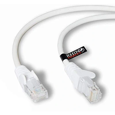 rhinocables CAT 6 High Speed Gigabit Ethernet Cable Patch Network Lead for LAN Snagless UTP With LSZH Jacket RJ45 Connector Internet, Router, Modem, Smart TV, PC & More (25cm, White, Pack of 1)