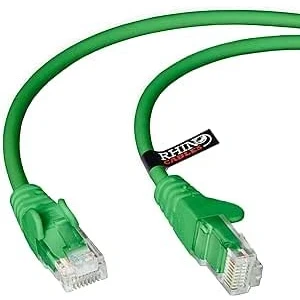 rhinocables CAT5e High Speed Ethernet Patch Network Cable for LAN — Snagless with RJ45 Connector Lead Ideal Internet, Router, Modem, Smart TV, PC & Laptop (1.5m, Green, Pack of 10)