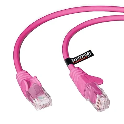 rhinocables CAT5e High Speed Ethernet Patch Network Cable for LAN — Snagless with RJ45 Connector Lead Ideal Internet, Router, Modem, Smart TV, PC & Laptop (Pink, 2m)