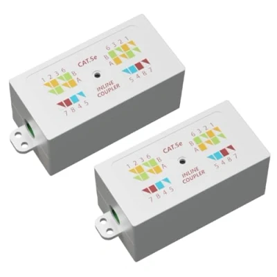 Universal Compatibility: Our krone punchdown coupler is designed to seamlessly inline connect CAT5 and CAT6 Ethernet cables, providing a versatile solution for various networking needs. Easy Installation: With its user-friendly colour coded design, this coupler allows for quick and hassle-free punchdown connections, making it perfect for both DIY enthusiasts and professional installers. Reliable Performance: Engineered for optimal signal transmission, our coupler ensures reliable data transfer and minimal signal loss, maintaining network performance at its best. *Internal use only. Space-Saving Design: The compact and space-saving design of the coupler makes it ideal for tight installations, network racks, or enclosures, allowing you to maximize your available space while maintaining a high-quality network connection. Your Options: Choose from sleek Black or classic White to seamlessly blend with your network setup, and select between CAT5 and CAT6 options to cater to your specific network requirements.