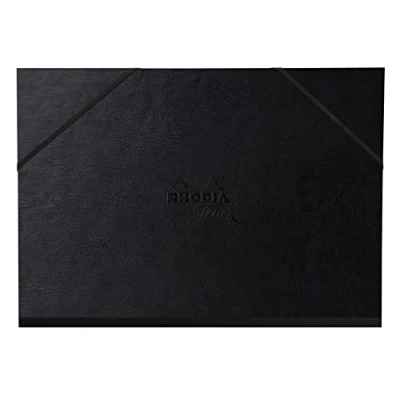 Rhodia 116194C Touch cardboard design 3 flaps, black Italian imitation leather with elastic closure 52x72 cm