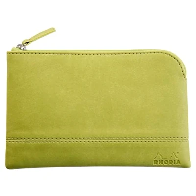 RHODIA 116531C Faux Leather Zipped Pouch Anise Size S (11x17 cm) Real Stitching Orange Fabric Interior Storage for Documents, Small Supplies