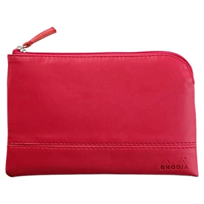 RHODIA 116543C Faux Leather Zipped Pouch Raspberry Size S (11x17 cm) Real Stitching Orange Fabric Interior Storage for Documents, Small Supplies