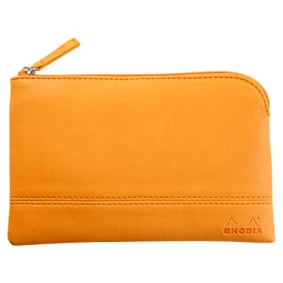 RHODIA 116547C Faux Leather Zipped Pouch Orange Size S (11x17 cm) Real Stitching Fabric Interior Storage of Documents, Small Supplies
