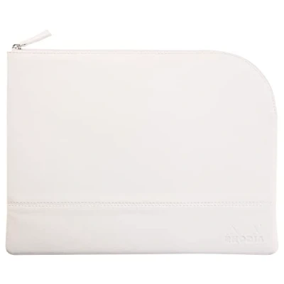 RHODIA 116722C Faux Leather Zipped Pouch White Size L (21x28 cm) Real Stitching Orange Fabric Interior Storage of Documents, Small Supplies