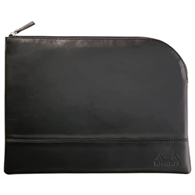 RHODIA 116723C Faux Leather Zipped Pouch Black Size L (21x28 cm) Real Stitching Orange Fabric Interior Storage of Documents, Small Supplies