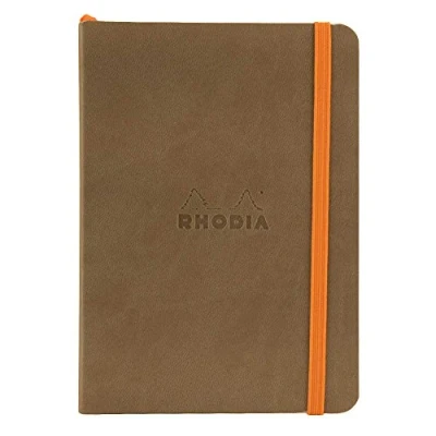 RHODIA 117354C Soft Taupe Notebook A6 Dotted Dot 144 pages Clairefontaine Ivory Paper 90 g/m Bookmark, Elastic Closure Faux Leather Cover Rhodiarama Collection