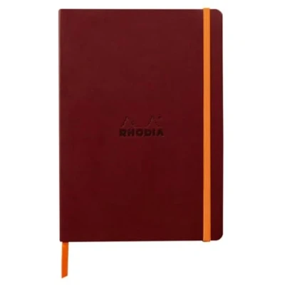 RHODIA 117436C Wine Soft Notebook A5 Dotted Dot 160 pages Ivory Clairefontaine Paper 90 g/m Bookmark, Elastic Closure Faux Leather Cover Rhodiarama Collection