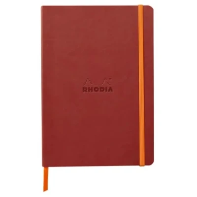 RHODIA 117437C Nacarat Soft Notebook A5 Dotted Dot 160 pages Ivory Clairefontaine Paper 90 g/m Bookmark, Elastic Closure Faux Leather Cover Rhodiarama Collection