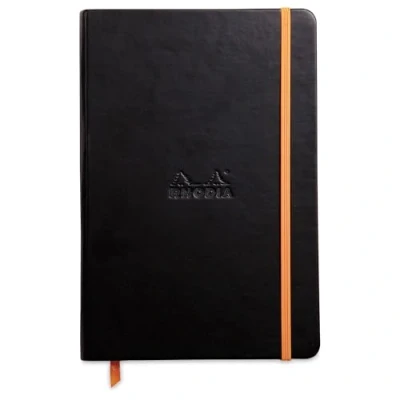 RHODIA 118742C Black Rigid Notebook A5 Lined 192 pages Ivory Clairefontaine Paper 90 g/m Bookmark, Elastic Closure Faux Leather Cover Rhodiarama Collection