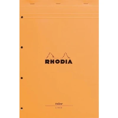 RHODIA 119660C Stapled Notepad N119 Orange A4+ Ruled 80 Detachable Sheets Perf. 4 Holes Clairefontaine Yellow 80G Paper Soft and Resistant Coated Card Cover Basics